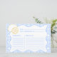 Añada un toque personalizado a su ducha de novia con esta impresionante tarjeta de recetas de inspiración mediterránea. Con un intrincado borde azul con acentos dibujados a mano, esta tarjeta exuda sin esfuerzo una moda perfecta para una ducha de novia con tema de limón "Main Squeeze". Ya sea que esté reuniendo sus preciadas recetas familiares o ofreciendo un esmerado toque de atención a sus huéspedes, este diseño combina con gusto estilo y función. Personalizar los campos para añadir un toque sentimental que dejará una impresión duradera. Su aspecto atemporal complementa una variedad de temas de ducha de novias, lo que lo convierte en una adición versátil y elegante a su día especial.