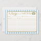 Tarjetas de la receta de la ducha de novia en azul claro y oro. Una útil ducha de boda en rayas azul y blanco pastel con acento purpurina falso dorado y texto dorado. ¡También hay un espacio para las notas en la parte trasera!