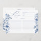 La receta de la ducha con flores de flores azules de la tela azul presenta un diseño de flores vintage y una caligrafía delgada en azul contra un fondo blanco.