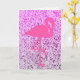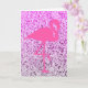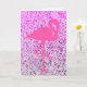 TARJETA DE FLAMINGO ROSA PURPURINA DE FAUX. BLANCO DENTRO.