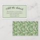 Tarjeta de recinto boda con el patrón "Victorian Meadow" en reverso