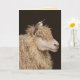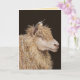 ovejas con pollos perchados en la cabeza sobre la tarjeta