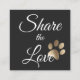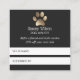 Elegante tarjeta de referencia para cualquier negocio relacionado con el mascota. Con un logotipo de la huella de una pata dorada en un fondo oscuro de carbón vegetal. Perfecto para paseantes de perros, mascotas, salones de mascota y mascotas.