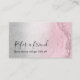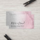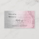Elegante y elegante tarjeta de referencia de artista de maquillaje con textura de mármol purpurina color rosa rosa falso, textura plateada y elegante fuente caligráfica.
