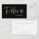 Estas modernas y modas tarjetas de referencia de negocios negras cuentan con un moderno guión manuscrito dorado falso y un lindo corazón garabateado para un aspecto casual y simple. La parte posterior tiene varios campos que puede personalizar con la información de su tienda minorista o de la empresa.