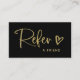 Tarjeta De Recomendación Black and Faux Gold Script and Heart |
