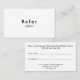 Tarjeta de referencia moderna y sencilla en blanco y negro. Un diseño elegante que proyecta una imagen de empresa segura. Perfecto para una amplia gama de profesiones incluyendo: spas, tratamientos de belleza, consultores de cabello y belleza, estilistas, maquilladores, esteticistas, peinados, entrenadores personales, por nombrar algunas. Personalice agregando su información de contacto al revés con su oferta especial de descuento. Diseñado por Thisisnotme©