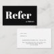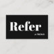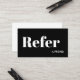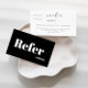 Esta elegante tarjeta de referencia de la compañía "remitir a un amigo" incluye tipografía audaz y diseño mínimo en blanco y negro.