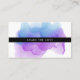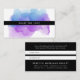 Aliente a sus clientes y clientes a compartir el amor con estas tarjetas de visita de referencia de acuarela de moda. En la parte delantera hay una sola línea de texto personalizado en blanco sobre una franja negra, sobre un fondo de manchas de pintura acuarela en tonos vivos de violeta violeta y azul índigo. Agregue la información de contacto y los términos de referencia al reverso utilizando los campos de plantilla proporcionados. Incluye espacio para los nombres de los remitentes y nuevos clientes.