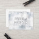 Las tarjetas de referencia de lujo incluyen el texto "remitir a un amigo" en dos líneas Añadir los términos de referencia y la información de contacto al reverso, con espacio para los nombres de sus clientes.