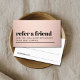 Modern fully customizable referral card template for beauty related professionals. Cool bold design with faux rose gold background and bold black fonts.