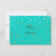 Tarjeta de Recomendación de Azul Turquesa y Puntos Dorados Brillantes. Artículos coincidentes en mi tienda.