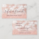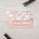Diseño elegante de tarjeta de referencia para artistas de maquillaje con purpurina dorado rosa de cobre gradiente, textura de mármol y elegante fuente caligráfica.