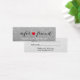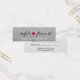 Elegante Tarjeta de referencia Purpurina de guión plateado con guión rojo del corazón.