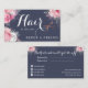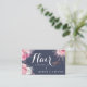 Tarjeta de referencia moderna y elegante para peinadores con tijeras de oro rosa de cobre falsas, rosas rosas rosas rosas rosas y blancas y elegante fuente caligráfica.