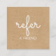 Tarjeta de referencia elegante simple rústica kraft. Versátil para una amplia gama de profesiones, incluyendo; salones, esteticistas, consultores de cabello y belleza, spas, artistas de maquillaje, salones de uñas, estilistas, por nombrar algunos. Personalice agregando la información de descuento para su cliente en el reverso con los detalles de contacto de su negocio en tipografía moderna y chic. Diseñado por Thisisnotme©