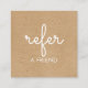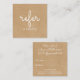Elegante y simple remitir a un amigo rústico kraft tarjeta de referencia. versátil para una amplia gama de profesiones, incluidas las siguientes: salones de belleza, esteticistas, consultores de cabello y belleza, spas, maquilladores, salones de uñas, estilistas por nombrar algunos! Personalice agregando información de descuento de cliente o cliente sobre el cambio con los detalles de contacto de su empresa en la tipografía moderna de moda. Diseñado por Thisisnotme©