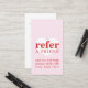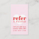 plantilla de tarjeta de referencia de personalizable completo de Guay para profesionales relacionados con la belleza (maquillador, peluquero, uñas). Nuevo diseño feliz con fuentes rojas audaces y fondo rosado e icono de corazón blanco. Personalizable completo, puede cambiar el fondo y los colores de las fuentes.