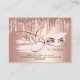 Esta moderna y elegante tarjeta de postratamiento con ojos de oro rosa dibujados a mano (pestañas y cejas) y goteo de purpurinas de oro rosa es perfecta para artistas de maquillaje, negocios de extensión de pestañas, extensión de latigazos, bloggers de moda, bar de cenizas, salón de belleza... Los detalles metalizados en relieve de este diseño son solo simulados. Este producto no contará con ningún relieve ni capa que creen un efecto metalizado.