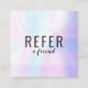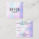 Tarjeta de referencia simple, moderna, profesional con un holográfico, gradiente arcoiris, iridiscente, fondo perla. Perfecto para profesionales como spas, salones, maquilladores, peluqueros, cosmetólogos, especialistas en el cuidado de la piel, esteticistas, tiendas de uñas y tiendas. Puede personalizarlo añadiendo sus datos de contacto y una oferta especial de descuento al revés. Diseñado por Thisisnotme©