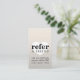 plantilla de tarjeta de referencia de personalizable completo de Guay para profesionales relacionados con la belleza (maquillador, peluquero, uñas). Diseño moderno con fuentes negras audaces y fondo plateado falso e icono del corazón blanco. Personalizable completo, puede cambiar el fondo y los colores de las fuentes.