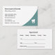 Diseño moderno de tarjetas de visita de oficina Dental creado con un elemento de diseño moderno de color verde azulado y un símbolo dental mostrado de forma sencilla y organizada, incluyendo una plantilla de cita en la parte posterior que hace que sus tarjetas sirvan como tarjetas de cita para sus clientes presentadas en papel de tarjeta de visita de esquina redondeada.