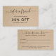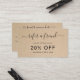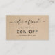 Simple tarjeta de referencia de negocios que incluye "remitir a un amigo" con cambios en una elegante letra manuscrita sobre un fondo rústico de papel marrón. El reverso tiene el formulario de remisión y su información de contacto. Este diseño femenino es genial para un negocio artesanal.