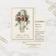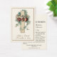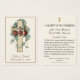 Con una hermosa imagen católica tradicional diseñada a medida de los corazones de Jesús, María y San José, superpuesta en una cruz floral. Hay una oración en el dorso para los novios. Todo el texto y las fuentes se pueden modificar.