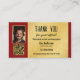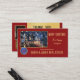 Tarjeta de visita de referencia para navidades con su propio logo en un fondo rojo con un ilustracion de una casa y un contorno de árbol de Navidad con copos de nieve festivos. En la parte posterior está la foto de su personalizado y una plantilla de código QR sobre rojo y oro. Una gran tarjeta de visita para un agente inmobiliario y personalizable para otros profesionales.