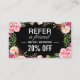 Esta tarjeta de referencia romántica del salón de belleza floral rosada es la forma perfecta de recompensar a sus clientes fieles por remitir nuevos negocios a su salón. Con un bonito patrón floral en tonos rosas, esta tarjeta de referencia es a la vez elegante y práctica. Simplemente repartirá estas tarjetas a sus clientes, y cuando remitan a un amigo, podrán presentar la tarjeta para recibir un descuento especial o una oferta en su próxima visita. Ideal para salones de belleza que buscan atraer nuevos negocios y premiar a clientes fieles.