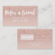 Refiérase a un amigo con esta moderna y elegante tarjeta de referencia de maquillaje con una moderna tipografía de pincel de estilo con letras a mano en blanco sobre un falso rosa purpurina de oro y un fondo elegante y de moda rosa pastel. Si necesitas alguna personalización, no dudes en contactarme