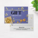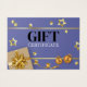 Diseño festivo glamoroso de alta calidad con caja de regalo de oro de lujo, arco y cinta con estrellas doradas y bola de árbol de Navidad en un simple fondo azul pastel. Este elegante y moderno certificado de regalo es perfecto para su pequeña empresa o para regalar a amigos y familiares, especialmente para Navidades de vacaciones.