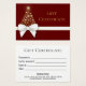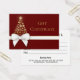 Lujoso y rico diseño vacacional con una espléndida silueta de árbol de Navidad con copos de nieve dorados. Decorada con un arco dorado blanco sobre un fondo rojo y exuberante. Este certificado de regalo es perfecto para su pequeña empresa o para regalar a amigos y familiares.
