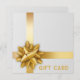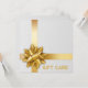 Elegante, noble, simple y glamuroso arco de regalo de oro y cinta de satén dorada sobre fondo blanco gris claro y exuberante. Este elegante y festivo certificado de regalo es perfecto para su pequeña empresa o para regalar a amigos y familiares.