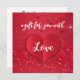 Ilustracion El día de San Valentín encantador con un corazón de papel rojo doblado con letras de letras de amor mostradas en un lujoso y elegante fondo purpurina, resaltado con estrellas brillantes y bokeh del corazón.