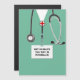 Tarjeta de regalo creativa de la escuela de enfermería con exfoliaciones hospitalarias y estetoscopio. Para personalizar el texto de edición para agregar el nombre de la enfermera o de la escuela de enfermería para crear una felicitación por graduación, un deseo de cumpleaños o una tarjeta de apreciación de la enfermera.