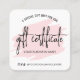 Certificados de regalo de acuarela rosada con tipos de letra modernos, diseño de acuarela totalmente editable y texto de personalizable. Crea tarjetas de regalo personalizadas para tu barra de lavado, peluquería, spa de uñas, negocio de belleza o cualquier otro servicio profesional usando este diseño de vales de regalo para chicas.