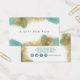 Tarjeta De Regalo De Tinta Líquida De Arte Moderno verde azulado Y Oro. Elegante diseño profesional de escritura caligráfica con letras de tinta de mano con alcohol. Perfecto para maquilladores, peluqueros, cosmetólogos y más!