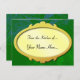 Pino Rama de invierno tópicos de recetas en blanco con marco dorado sobre un fondo verde del bosque con patrón de pino Yule azul y verde. Añade tu receta especial de vacaciones a esta tarjeta de personalizado.