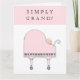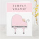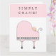 Tarjeta de bebé creativa para madre, padre o padres nuevos con un diseño adorable con temas musicales recién nacidos y piano de cola rosa.