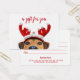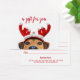 Ilustracion de mascota de animales de la Feliz Navidad con un perro curioso usando una banda de peluquería de renos. Esta divertida y festiva tarjeta de regalo de temporada es perfecta para su pequeño negocio o para regalar a amigos y familiares.