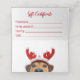 Ilustracion de mascota de animales de la Feliz Navidad con un perro curioso usando una banda de peluquería de renos. Esta divertida y festiva tarjeta de regalo de temporada es perfecta para su pequeño negocio o para regalar a amigos y familiares.