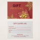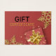 Elegante diseño de vacaciones de alta calidad con glamorosos copos de nieve purpurina de oro y caja de regalo sobre un fondo rojo. Este certificado de regalo festivo es perfecto para su pequeña empresa o para regalar a amigos y familiares, especialmente para el tiempo de Navidad.