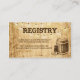 Tarjeta de registro de bodas para una invitación a una boda de campo con botas de vaquero, luces de cuerdas y cañón sobre un fondo de madera. Puede editar el texto con su información. También puede mover, cambiar el tamaño o eliminar la palabra "registro". Por favor, vea mis otros elementos coincidentes de esta colección. Invitación: http://www.zazzle.com/country_wedding_invitation_with_cowboy_boots-256585105160644183?rf=238757713317449265 RSVP: http://www.zazzle.com/country_wedding_rsvp_for_rustic_wedding_3_5x5_paper_invitation_card-256679025784733925?rf=238757713317449265 Y más!