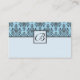 Dé estas tarjetas de registro de regalos de boda a su familia y amigos para hacerles saber en dónde está registrado. Estas tarjetas de registro de bodas presentan un elegante patrón de damasco negro en un fondo azul claro con un personalizable monograma inicial. Estas tarjetas se coordinan con todos los demás productos finos de nuestra colección de bodas Damask Classic - Blue.