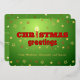 Esta tarjeta tiene un fondo verde, una dispersión de estrellas, y dice "saludos de Navidad" en el frente. La "i" de Holiday es una vela que brilla con fuerza. El mensaje en el Relieve metalizado de oro "Desde Madison, Alexander y su familia" puede ser editado para su propio saludo personal. En la parte de atrás hay una dispersión similar de estrellas, y texto listo para que usted lo personalize con su propio mensaje. (O puedes usar el predeterminado "¡Deseándote una Feliz Navidad y felicidad en el año que viene!")