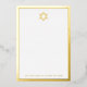 Elegantes cartas verticales con una simple Estrella de David en la parte superior, y nombre personalizado u otro texto en la parte inferior. A lo largo del borde hay un borde sólido en Relieve metalizado dorado plateado, dorado o rosa sobre un fondo de color blanco o personalizado. Cambiar fuentes y colores con la herramienta de diseño. Diseño de papel minimalista y elegante.
