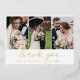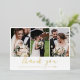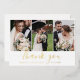 Perfecto para expresar gratitud a sus invitados, la tarjeta puede ser personalizada con su más sincero mensaje, permitiéndole compartir una parte de su alegre celebración mientras transmite su agradecimiento. Tanto si optas por las escenas románticas del atardecer, por una risa sincera o por unas poses clásicas, esta tarjeta de agradecimiento sirve como un bizcocho que tanto tú como tus invitados apreciarán en los años venideros. Añade fácilmente tus fotos favoritas, nombres de novios y novios, fecha y un mensaje y firma personalizado en el reverso.