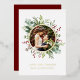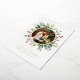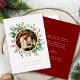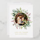 Esta tarjeta de agradecimiento fotográfico presenta eucaliptos de color de agua pintados, hojas verdes, bayas rojas, ramas de pino y un marco de círculo de Relieve metalizado dorado con texto opcional en la parte posterior. Para una personalización más avanzada de este diseño, haga clic en el BOTÓN HERRAMIENTA DE DISEÑO AZUL.
