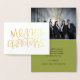 El Relieve metalizado de oro festivo destaca esta tarjeta de saludo plegada de vacaciones con foto opcional en el interior.